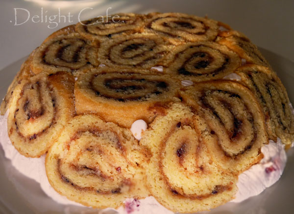 Rullisin biskviidi tagasi lahti, katsin ühtlase kihi moosiga (soovitavalt hapukam, mul oli tikri toormoos) ja keerasin biskviidi rulli, nüüd aga pikemast otsast alustades. Lõikasin umbes 1 cm paksused viilud.